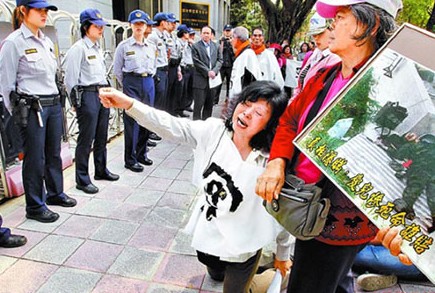 中新網(wǎng)3月25日電 據(jù)臺灣媒體報道,臺空軍一中士蔡學(xué)良于前年五月九日在靶場射擊時遭槍傷后不治身亡,被判定是自殺,蔡母尤瑞敏率親屬到空軍司令部前拉白布條抗議,痛批空軍“草菅人命、黑箱作業(yè)、毀滅證據(jù)”,蔡母倒地痛哭:“司令,我給你跪,拜托你給我們一個真相,不要再敷衍了!”隨后并向“監(jiān)委”趙昌平陳情,趙允諾調(diào)查,近期內(nèi)將約談相關(guān)人員。
