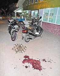 警方調(diào)查,昨下午三時(shí)三十分,蘇男騎摩托車抵屏東臺(tái)糖冰品部停車場時(shí),郭女已在廣場等候,兩人停下機(jī)車談判,但才過幾分鐘,蘇、郭兩人一言不合吵了起來,蘇男突取出水果刀欲刺郭女,郭女轉(zhuǎn)頭想逃,但背部仍遭蘇男連刺六刀,傷重不支倒地。蘇男隨后持刀自刺頸部、左手臂、左腕后倒地,由于案發(fā)地點(diǎn)就在市區(qū),兩人很快被人送到醫(yī)院。軍方接報(bào)為避免蘇男情緒波動(dòng)太大,已派人在醫(yī)院看護(hù),而女方家人趕到醫(yī)院時(shí),低調(diào)不愿多談。兩人均已脫離險(xiǎn)境。