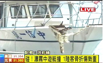 上午11點多,一艘滿載游客的游艇疑似受濃霧影響,視線不良,在?看a頭時,直接追撞到前方的游艇,游艇上23名乘客是來自大陸的游客,大部分年紀都比較大,不少人還是退休醫(yī)師,游客回想當時情況,還是非常害怕。