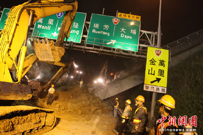 在現場參與救援的“高速公路局”北區(qū)工程處長許鉦漳表示,已經動員59部挖掘機、147輛卡車,并動員960人力,需要移除的20萬立方公尺,已經挖掘超過2萬立方公尺,以平均每小時可挖1000立方公尺,每天工作20小時計算,預計需超過1星期才可將土方完全清除,清除后還要進行復原工作。