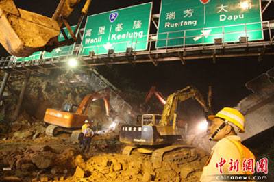 據悉,山崩地點范圍從北二高南下3.1公里至北上2.8公里處,土石覆蓋雙向路面的長度達300米,土石量總重超過20萬立方公,南北交通中斷。