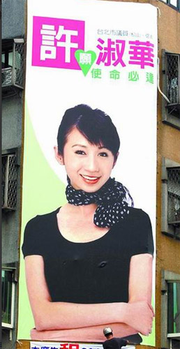 中新網(wǎng)5月19日電 據(jù)臺灣《蘋果日報(bào)》報(bào)道,臺北市信義路、松仁路口的臺北市議員許淑華競選廣告帆布廣告牌,于20多天前設(shè)立,因當(dāng)時晚上施工的人員未拆下帆布后方凸出鐵條,導(dǎo)致廣告上胸部位置有兩點(diǎn)凸起,造成“激凸”效果。