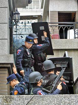 維安特勤隊(duì)是警界的精英組成,目前全臺共有一百三十名成員,“警政署長”王卓鈞已于昨深夜批準(zhǔn),今天派出四十人進(jìn)駐臺中市;這批精銳部隊(duì)配備重武器,包括沖鋒槍、狙擊槍等,對黑道暴力犯罪具有壓制能力。