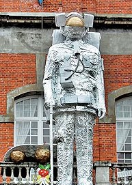 中新網(wǎng)6月7日電 據(jù)臺灣《蘋果日報》報道,蔣介石銅像也搞角色扮演?臺北市建國中學(xué)上周五舉辦畢業(yè)典禮,因今年畢業(yè)主題為科技未來風(fēng),學(xué)生用錫箔紙包覆校門口的蔣介石銅像,并戴上保麗龍制的頭盔、氧氣筒,變身太空人,祝福建中人畢業(yè)后能邁開大步。校方表示,學(xué)生創(chuàng)意未丑化銅像,不擔(dān)心惹政治爭議。