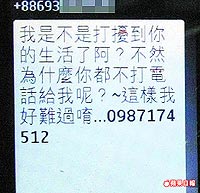 民眾藍先生昨日在臺北市議員李文英陪同下出面控訴,他十七歲兒子前天凌晨收到“為什么你都不打電話給我呢?這樣我好難過唷”短信,以為是同學(xué)而回撥,翌日接獲電信業(yè)者通知暴增一萬八千多元通話費。