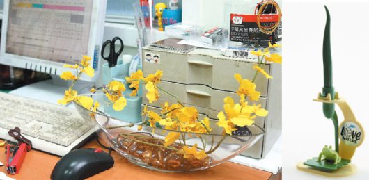 此外,還可在座位靠走道或鄰近人往來走動(dòng)的那一面,擺放會(huì)規(guī)律性旋轉(zhuǎn)、擺動(dòng)的對象,如點(diǎn)頭娃娃,因?yàn)橐?guī)律擺動(dòng)的事物可讓周圍空氣流轉(zhuǎn),氣場流暢,做事也就會(huì)比較順利,如果你是老板,甚至可以大方擺個(gè)流水球,更有氣勢。主管級的人,辦公桌上或可擺放陣仗較大的流水。