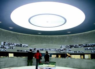 此外,藉由長毛地毯的設(shè)計(jì),使得每位觀展民眾的足印可以烙印在長毛地毯上。隨著展覽主題的不同,特殊的展覽品展出時,如果參觀民眾多,長毛地毯上就會留下更多人的足印。黨徽與每天的展覽變化呈現(xiàn)微妙的強(qiáng)烈關(guān)系。
