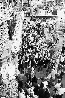 1至2日,廈門海滄青礁慈濟(jì)宮保生大帝神像在臺南市和臺南縣的三個宮廟進(jìn)行了繞境巡游(右圖),并在其中兩個宮廟駐蹕。數(shù)以萬計(jì)的島內(nèi)南部信眾簇?fù)砉в,讓青礁慈?jì)宮交流團(tuán)成員深深體會到了信眾的熱情,以及閩臺宗教文化交流的熱潮。