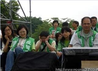 至于謝長廷,也因?yàn)榫癫粷?jì),先到后臺(tái)稍做休息,而靜坐舞臺(tái)上,僅剩黨主席蔡英文和游錫堃率領(lǐng)部分黨公職坐在臺(tái)上,聽著新聞關(guān)心時(shí)事。此外,現(xiàn)場也可發(fā)現(xiàn),部分“立委”因靜坐一宿,體力已超出負(fù)荷,紛紛在舞臺(tái)上打起瞌睡,有的人甚至悄悄地消失不見了。