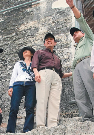 中新網(wǎng)6月1日電 據(jù)臺灣《聯(lián)合報》報道,馬英九訪問中美洲已經(jīng)六天。馬英九夫婦被安排參觀危地馬拉提卡爾公園的馬雅遺址,輕松爬上數(shù)百階的神廟,當(dāng)團(tuán)員問馬英九“累不累?”沒想到一旁的“酷酷嫂”周美青插話說“他什么都沒做,怎么會累!”