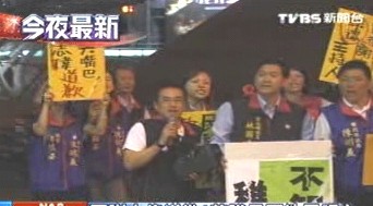 藍(lán)營議員高喊:“謝志偉道歉!民視負(fù)責(zé)!謝志偉道歉!”藍(lán)營議員算準(zhǔn)謝志偉上班時間,帶隊(duì)到民視大門口抗議,但兩排警力層層擋住大門口,臺北縣議員陳明義,腳進(jìn)不去,干脆用手丟雞蛋泄憤。