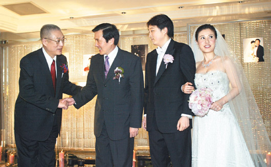 結(jié)婚酒會由吳伯雄證婚,馬英九貴賓致詞,期勉新郎至少要生三個以上。他也詢問新人婚后是否定居臺灣,當(dāng)?shù)玫娇隙ù鸢负,隨后竟爆出“那就歸我管了”,讓現(xiàn)場笑翻天。