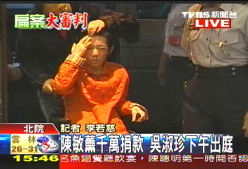 在庭訊結(jié)束前,吳淑珍親自訊問(wèn)馬永成,吳淑珍問(wèn)“二○○五年縣市長(zhǎng)選舉時(shí),你有拜托辜仲諒捐款給民進(jìn)黨,還要捐給羅文嘉,我叫你轉(zhuǎn)給羅文嘉?”