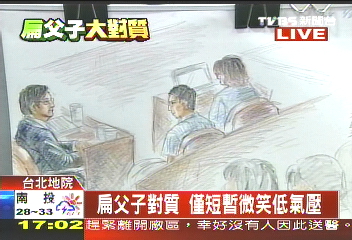 據(jù)臺灣“今日新聞”報道,陳致中在下午14時10分左右抵達臺北地院,由于法院上午傳喚馬永成、林德訓與前“總統(tǒng)府”會計長馮瑞麟的對質(zhì)到下午3時才結束,這場父子對質(zhì)被迫延后進行。蔡守訓還特別征詢陳水扁需要多少時間休息,扁打破一個多月的沉默,以手指比了個“2”,表示需要20分鐘休息。最后蔡守訓諭知3時40分再開庭。
