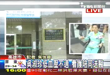 根據(jù)醫(yī)護(hù)人員初步檢查,吳淑珍疑似因為過度勞累而出現(xiàn)血壓過低的情況,住進(jìn)醫(yī)院VIP病房,將接受主治醫(yī)生進(jìn)一步的詳細(xì)檢查。