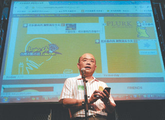中新網(wǎng)7月20日電 據(jù)臺灣《聯(lián)合報》報道,噗浪風(fēng)潮席卷臺灣政壇,民進(jìn)黨兩大天王蘇貞昌、謝長廷都以噗浪為舞臺,跳上第一線經(jīng)營青年族群。蘇貞昌19日舉辦全臺第一次政治人物的噗友聚會,蘇系青年軍全體“歸隊”;謝長廷八月將舉辦第十六屆新文化營隊,謝家軍經(jīng)驗傳承,謝也將講授噗浪經(jīng)驗。