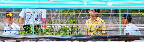 扁最近作息正常,每天放風(fēng),走出舍房曬太陽、運(yùn)動(dòng)。北所為保護(hù)扁安全,今年1月起在他放風(fēng)的運(yùn)動(dòng)場(chǎng)外掛起帆布,但前天仍被記者直擊扁放風(fēng)畫面?梢钥闯鏊袅祟^發(fā),穿著深藍(lán)色短褲、藍(lán)白拖鞋,繞著運(yùn)動(dòng)場(chǎng)慢走。
