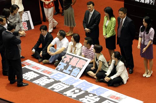 民進黨團的阻撓行為導致議事延誤逾一小時。近中午時,雖然吳敦義順利上臺,但在藍綠“立委”的雙重人墻包圍下,僅報告約10分鐘即結(jié)束。在隨后的總質(zhì)詢中,吳敦義接任“行政院長”前的香港之行,成為民進黨“立委”質(zhì)疑焦點。