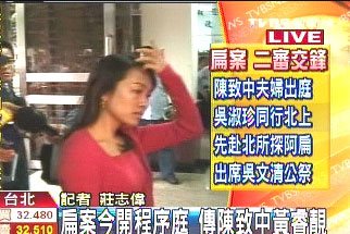 中新網(wǎng)10月30日電 據(jù)臺灣TVBS報道,臺灣高等法院審理扁家弊案,今天(30日)首度傳喚陳致中和黃睿靚出庭,對于媒體詢問只回答“謝謝”兩字,就快步進(jìn)入法庭。