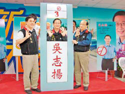 據(jù)臺(tái)灣《中國時(shí)報(bào)》報(bào)道,國民黨桃園縣長候選人吳志揚(yáng),昨日請(qǐng)來郝龍斌、胡志強(qiáng)喊出“桃園郝強(qiáng)”響亮口號(hào),郝推薦吳的小學(xué)生學(xué)英語政策,而胡則認(rèn)為桃園縣走了朱立倫又來個(gè)吳志揚(yáng),一定會(huì)“超中趕北”。