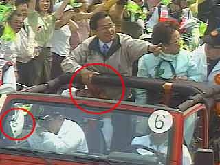 呂秀蓮辦公室也指出,呂秀蓮親眼看到陳水扁腹部的傷勢,不像槍彈從正面擊中所形成,確實一度懷疑是否是先打中她的膝蓋,子彈再彈刮傷陳水扁的腹部,但隨后看到陳水扁穿的夾克右側(cè)有彈孔,左側(cè)并無破洞,她便放棄原先的推測。