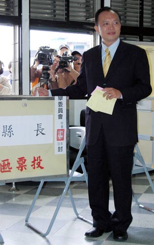 中新網(wǎng)12月5日電 臺灣縣市長選舉今天(5日)投票,在藍(lán)綠陣營爭奪激烈的“超級戰(zhàn)區(qū)”宜蘭縣,國民黨參選人、現(xiàn)任縣長呂國華和民進(jìn)黨參選人林聰賢不約而同都選在上午9時左右前往投票。