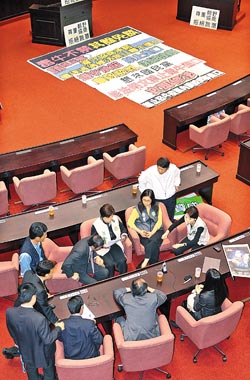 昨天“立法院”院會,僅通過兩項補正案,隨后民進黨團甲級動員杯葛院會,霸占主席臺。讓好脾氣的王金平在議場外受訪時都表示,民進黨團用這種理由包圍主席臺,“我們覺得是非常非常不當(dāng)”。