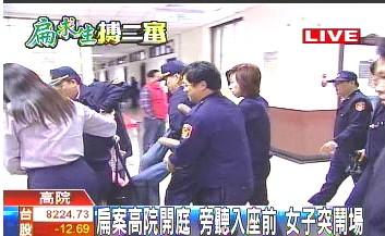 另據臺灣TVBS報道,開庭前,庭外一名女子試圖闖入法庭旁聽遭到警方制止并抬出庭外,該名女子激動喊叫,似乎相當關心陳水扁在法庭內的表現(xiàn)。