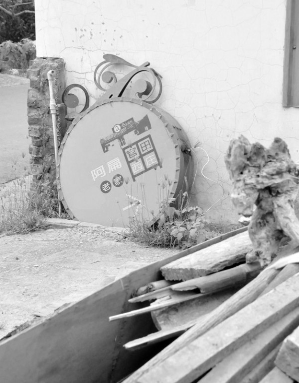 往前再幾分鐘的車程,就到陳水扁的老家西莊村。拐進(jìn)一條無名的小巷,巷口的電線桿上掛有“官田西莊、阿扁老家”的綠色招牌,已是舊跡斑斑。到了另一個(gè)巷口,一個(gè)圓環(huán)形的“阿扁老家”招牌被扔在廢墟水溝邊上,而不是高高掛起。