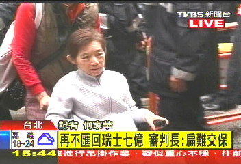 據(jù)臺(tái)灣TVBS報(bào)道,6月11日扁案就要二審宣判,今天再度開(kāi)庭時(shí)傳喚陳水扁、吳淑珍、陳致中、黃睿靚等4人。法庭上,審判長(zhǎng)當(dāng)著扁家4個(gè)人的面表示,要他們盡速將瑞士4個(gè)賬戶(hù),將近7億新臺(tái)幣的錢(qián)匯回臺(tái)灣,否則月底(4月23日)陳水扁即將羈押期滿(mǎn),屆時(shí)想要交保,重獲自由機(jī)率等于是零。