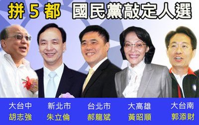 據(jù)報(bào)道,民進(jìn)黨預(yù)計(jì)在本月19日舉行中執(zhí)會(huì),通過“五都”(臺(tái)北縣升格后的新北市、臺(tái)北市、縣市合并后的大臺(tái)中市、大臺(tái)南市和大高雄市)市長提名,但截至目前為止,僅透過黨內(nèi)初選民調(diào),確定大高雄市長將提名現(xiàn)任高雄市長陳菊,大臺(tái)南市長則由“立委”賴清德披掛上陣,而臺(tái)北市、新北市和大臺(tái)中市提名仍未定。