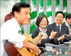 隨后,蘇嘉全拿起吉他自彈自唱《愛你一萬年》、《讓我們看云去》、《其實你不懂我的心》等歌曲,還數(shù)度眼神對著蔡英文,讓蔡英文當(dāng)場笑了出來。