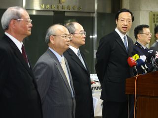 據(jù)報道,“內(nèi)政部長”江宜樺、“檢察總長”黃世銘、“高等法院檢察署檢察長”顏大和、“法務(wù)部調(diào)查局長”吳瑛、“國防部憲兵司令部司令”李翔宙等人,10日在刑事局舉行聯(lián)合記者會,說明現(xiàn)階段強化治安措施、掃黑行動的“霹靂專案”。