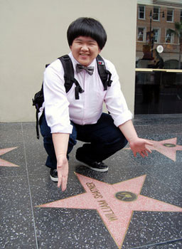 以一首“I Will Always Love You”紅透半邊天,并被美國知名脫口秀節(jié)目邀請專訪的林育群,23日趁著在美國的最后一天,到好萊塢知名的星光大道觀光,找尋最愛藝人的手印與星星。