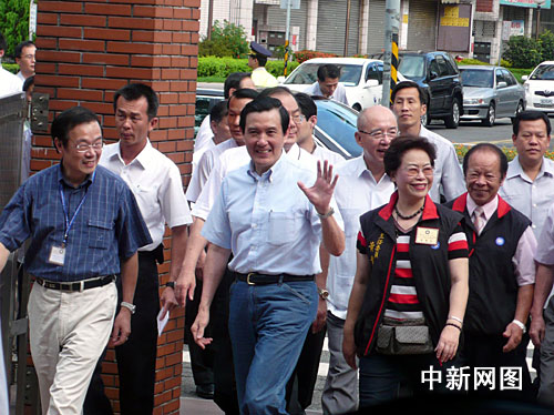 中新網(wǎng)臺(tái)北7月26日電 (記者 劉舒凌)上午8點(diǎn)半前,參與中國(guó)國(guó)民黨主席選舉的臺(tái)灣領(lǐng)導(dǎo)人馬英九在現(xiàn)任黨主席吳伯雄等黨內(nèi)人士陪同下前往設(shè)在臺(tái)北市文山區(qū)靜心小學(xué)的投票所投票。他說(shuō),我出來(lái)參選是為了承擔(dān)責(zé)任,最主要是把黨政運(yùn)作更緊密結(jié)合,讓臺(tái)灣政治事務(wù)推動(dòng)更為有效。