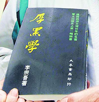 《厚黑學(xué)》主要是論述中國(guó)歷史上英雄豪杰之所以成功,無(wú)非“面厚、心黑”。國(guó)民黨“立委”得知扁收到《厚黑學(xué)》后多所嘲諷,黨團(tuán)書記長(zhǎng)張碩文說(shuō):“阿扁其實(shí)就是最好的《厚黑學(xué)》,前無(wú)古人、后無(wú)來(lái)者,他是最好的活教材!