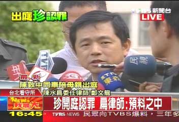 中新網(wǎng)2月10日電 據(jù)臺(tái)灣TVBS報(bào)道,陳水扁夫人吳淑珍今天(10日)出庭應(yīng)訊,當(dāng)庭承認(rèn)偽造文書和洗錢罪,對(duì)此,陳水扁委任律師鄭文龍表示,早在預(yù)料之中。