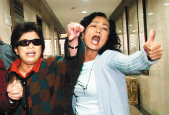 場(chǎng)外聚集抗議及支持民眾,各自表述大喊“扁嫂加油”、“吳淑珍關(guān)起來(lái)”,兩方人馬各約四十人,比采訪扁案的記者及維持秩序的警力還少。