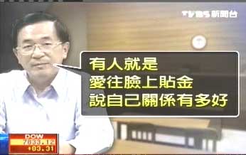 陳水扁說(shuō)“我太太身體不方便,都是用電話聯(lián)系,有人就是愛往臉上貼金,說(shuō)自己關(guān)系有多好,明明只到過(guò)官邸接待室,就說(shuō)自己天天走官邸,辜仲諒就是其中一個(gè),我不可能有那么多時(shí)間,一個(gè)禮拜見他一次,他卻出去就講,我跟陳水扁關(guān)系有多好,樹大招風(fēng)就是這樣!