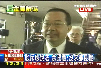 余政憲轉(zhuǎn)述游錫堃的說法是,當(dāng)時的“總統(tǒng)”陳水扁屬意要余政憲出任“總統(tǒng)府副秘書長”,但是游錫堃認(rèn)為余政憲比較適合擔(dān)任“內(nèi)政部長”職位,所以才對打電話向余政憲征詢,而當(dāng)時余政憲也有意愿,所以才會出任。整個事件從頭到尾都跟吳淑珍沒有關(guān)系,也等于是否定了吳淑珍25日開庭時余政憲曾向她求官的說法。