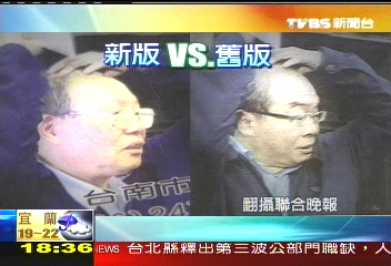 據(jù)臺灣TVBS報道,黃永田又有新名片,乍看好像是原本那張掀掉邱毅發(fā)片的新聞照片,不過仔細看,邱毅變了一張臉,變成一位老先生,比對一下新舊版本,明顯發(fā)現(xiàn)兩張臉孔大不同。