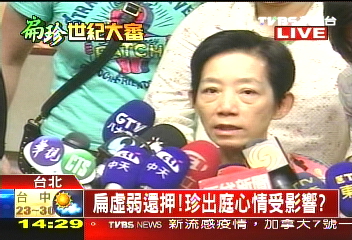 中新網(wǎng)5月7日電 據(jù)臺灣TVBS報道,7日下午陳水扁夫人吳淑珍再出庭,就龍?zhí)顿彽乇装负臀羧沼讶瞬蹄懻芾^續(xù)進行對質;原本希望丈夫陳水扁在上午延押庭中可以解除羈押,但仍暫時還押看守所,吳淑珍聲稱,應準許陳水扁戒護就醫(yī)。