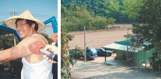 臺(tái)灣南部此時(shí)太陽(yáng)正烈,邱義仁頂著艷陽(yáng)在兩千多坪農(nóng)地上來(lái)回巡,整地工人開(kāi)著挖土機(jī)整地,他蹲在田里,拿著磚頭、鏟子松土,戴振耀不時(shí)湊過(guò)去“指導(dǎo)”,教他怎么把土翻松。