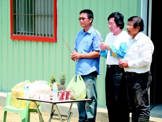 戴振耀陪邱義仁焚香拜拜,祈求風(fēng)調(diào)雨順年年收成好;他說(shuō),前晚兩人聊種田的事聊到12點(diǎn)多,邱義仁對(duì)務(wù)農(nóng)很有興趣。