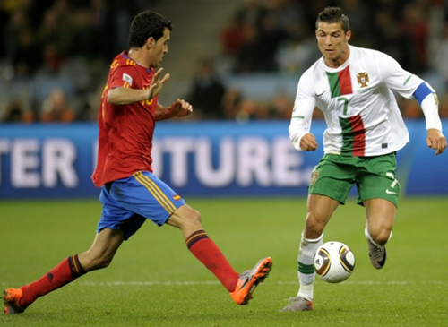 第12分鐘西班牙通過戰(zhàn)術(shù)角球發(fā)動攻勢,托雷斯的掃射稍稍高出。第20分鐘,葡萄牙打出反擊,蒂亞戈的遠(yuǎn)射也被卡西利亞斯奮力撲出,隨后卡西利亞斯反應(yīng)神速將球破壞,沒有給阿爾梅達(dá)補(bǔ)射的機(jī)會。