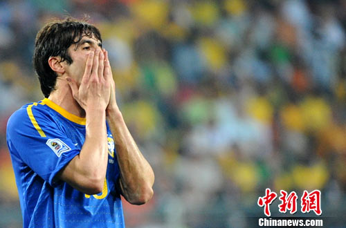一球落后的荷蘭隊發(fā)動反擊,庫伊特接隊友傳球小角度射門,被塞薩爾撲出,不過隨后的點球沒有什么威脅。隨后場面再度陷入僵持,雙方主要集中火力在中場進行爭奪,荷蘭隊也曾組織過幾次攻勢,但都被巴西隊防守隊員化解。第25分鐘,卡卡帶球被德容飛鏟,動作很大但裁判認為并沒有犯規(guī),面對巴西隊精湛的個人技術,荷蘭隊后衛(wèi)顯得非常吃力。