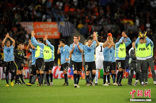“如果要輸球,以這種方式輸球倒可以接受,”塔巴雷斯說(shuō)。“我們又獲得了體現(xiàn)我們?yōu)趵缛艘庵镜臋C(jī)會(huì),超越我們的極限而與對(duì)手戰(zhàn)成勢(shì)均力敵!痹1/4決賽中,烏拉圭隊(duì)曾有神奇表現(xiàn),前鋒蘇亞雷斯在與加納隊(duì)比賽的最后一分鐘用手將對(duì)方的必進(jìn)球拍出,他被出示紅牌罰下并送給對(duì)手一個(gè)點(diǎn)球。不過(guò)加納隊(duì)的前鋒吉安踢飛了點(diǎn)球,烏拉圭隊(duì)最終在點(diǎn)球大戰(zhàn)中4比2擊敗加納隊(duì)晉級(jí)。