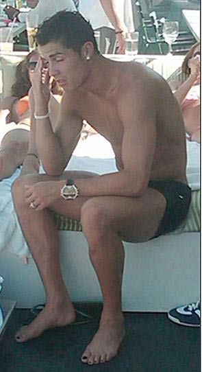 C•羅結(jié)束世界杯后,未有趁空檔多多陪伴親兒,反而飛往紐約度假,與俄羅斯模特兒女友莎爾克風(fēng)流快活,獨(dú)留兒子在葡萄牙交由親母照顧。C•羅在泳池曬太陽(yáng)期間被拍下“艷照”,一身古銅色肌膚令不少女“粉絲”口水長(zhǎng)流,但10只腳趾甲涂上較膚色更黑的甲油,比他的俊俏臉龐更搶鏡。C•羅身為“潮人”,應(yīng)會(huì)把打扮之道傳給剛出生的兒子。