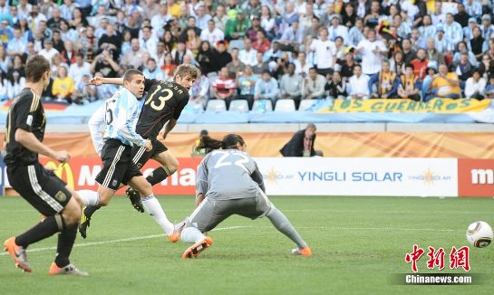穆勒在場(chǎng)上依然表現(xiàn)出了一名優(yōu)秀射手的靈敏嗅覺,在第19分鐘,隊(duì)友在禁區(qū)外大力抽射對(duì)方球門,穆勒在沒有越位的位置果斷啟動(dòng)沖到門前,皮球被對(duì)方門將托了一下后剛好落到他的腳前,21歲的穆勒表現(xiàn)出與其年齡不符的冷靜,輕松將球推射進(jìn)球門右側(cè),這也是他在本屆世界杯上的第五個(gè)個(gè)人入球,也追平了西班牙的比利亞和荷蘭的斯內(nèi)德,成為最佳射手的有力爭(zhēng)奪者。