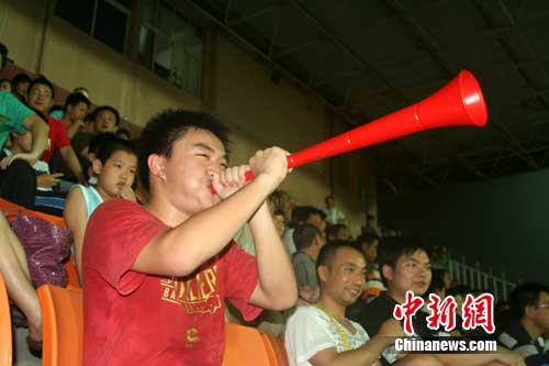 中新網(wǎng)南昌7月14日電(劉占昆)南非世界杯剛落下帷幕,2010年中超聯(lián)賽重燃戰(zhàn)火,14日晚上,記者在中超賽場(chǎng)中,看到許多球迷拿著南非世界杯特有的助威“大喇叭”為球隊(duì)助威,這就是可以發(fā)出超過(guò)一百分貝的“呼呼塞拉”,此前在中超賽場(chǎng)中從未出現(xiàn)過(guò)。